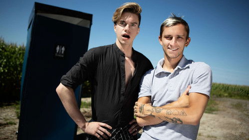 Tony D'Angelo goes into the bathroom looking for a hookup. The guy next to him at the urinal isn't interested... but the urinal is. A pair of hands appear from either side of the appliance and stroke him off, then point the way to a hole where an ass appears for him to fuck. Security guard Johnny Donovan catches the top and decides to get in on the action, sucking Tony's cock and cumming in the urinal before the tattooed hunk uses his cum as lube to go back to the hole in the wall until he blows his load in The Men's Room.